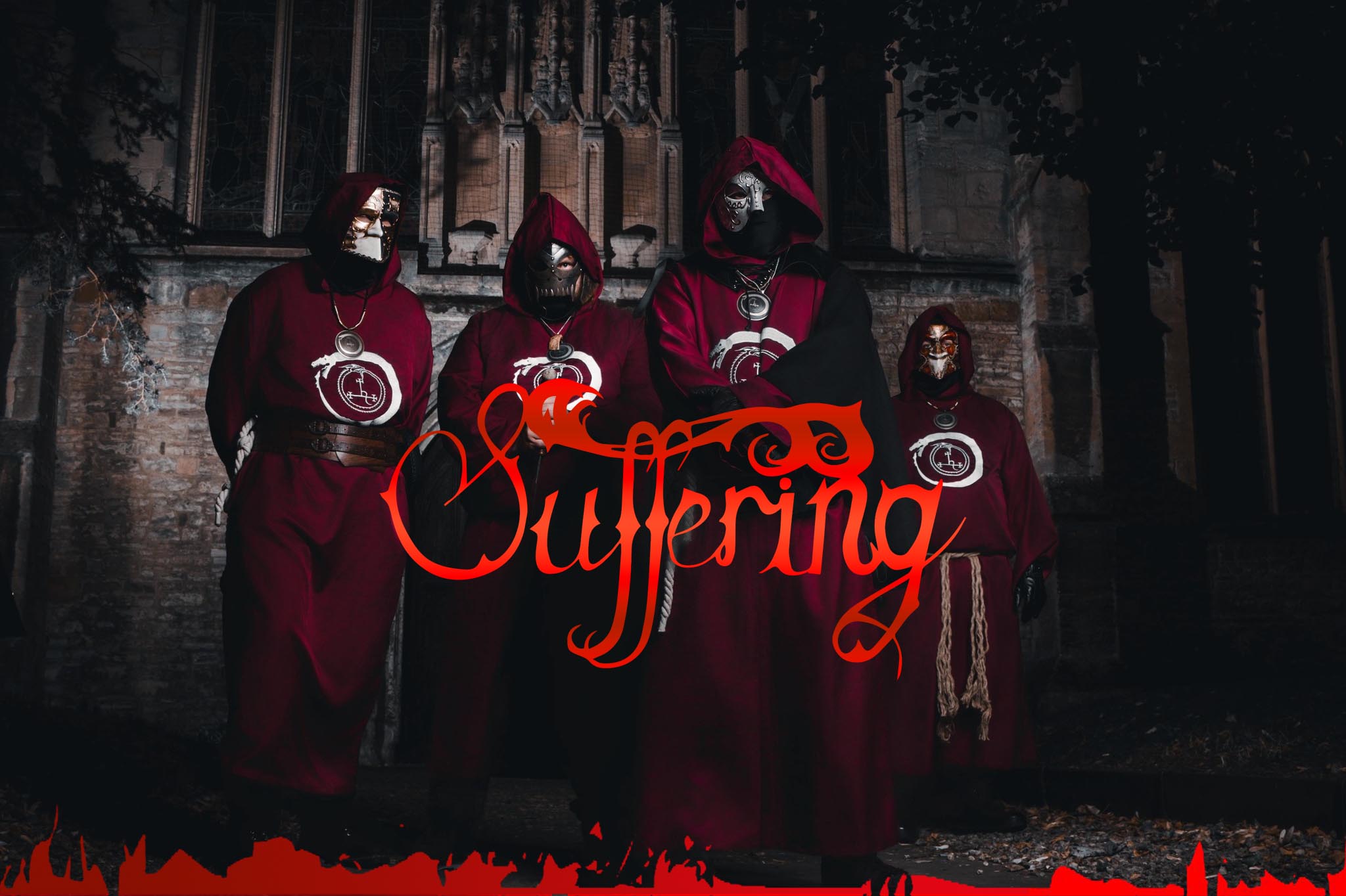 Formados en 2012 en la región británica de West Midlands, Suffering son exponentes del black metal ocultista, conjuradores de pesadillas febriles e invocadores de oscuridad y locura. Su música se nutre del peso opresivo del doom devastador y del fervor violento del black metal más oscuro, uniéndolos en un elixir de veneno que mancha el espíritu y distorsiona la mente. Su primera entrega arcana fue el álbum de 2018, ‘11‘, al que le siguieron dos EP: ‘Temen-Ni-Gru (11:11)‘ en 2022 y ‘Symphonies: Diabolis’ del año pasado. Ahora, recién fichados por Apocalyptic Witchcraft, un sello que el líder de la banda, Sturmgeist Fornicator Insultus, describe como uno que «…apoya, anima y se esfuerza por superar los límites de la música extrema…», están listos para presentar su segundo álbum, su trabajo más fascinante e inquietante hasta la fecha, ‘Things Seen But Always Hidden‘.
