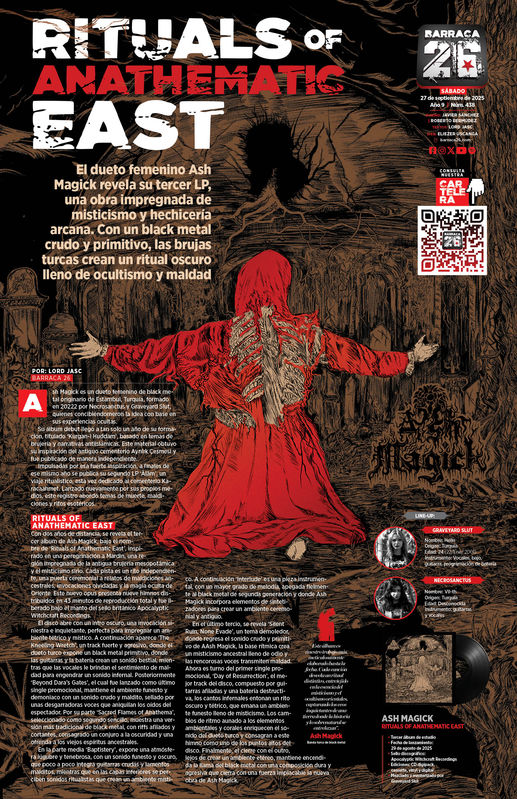 Con dos años de distancia, se revela el tercer álbum de Ash Magick, bajo el nombre de ‘Rituals of Anathematic East’, inspirado en una peregrinación a Mardin, una región impregnada de la antigua brujería mesopotámica y el misticismo sirio. Cada pista es un rito independiente, una puerta ceremonial a relatos de maldiciones ancestrales, invocaciones olvidadas y la magia oculta de Oriente. Este nuevo opus presenta nueve himnos distribuidos en 43 minutos de reproducción total y fue liberado bajo el manto del sello británico Apocalyptic Witchcraft Recordings.