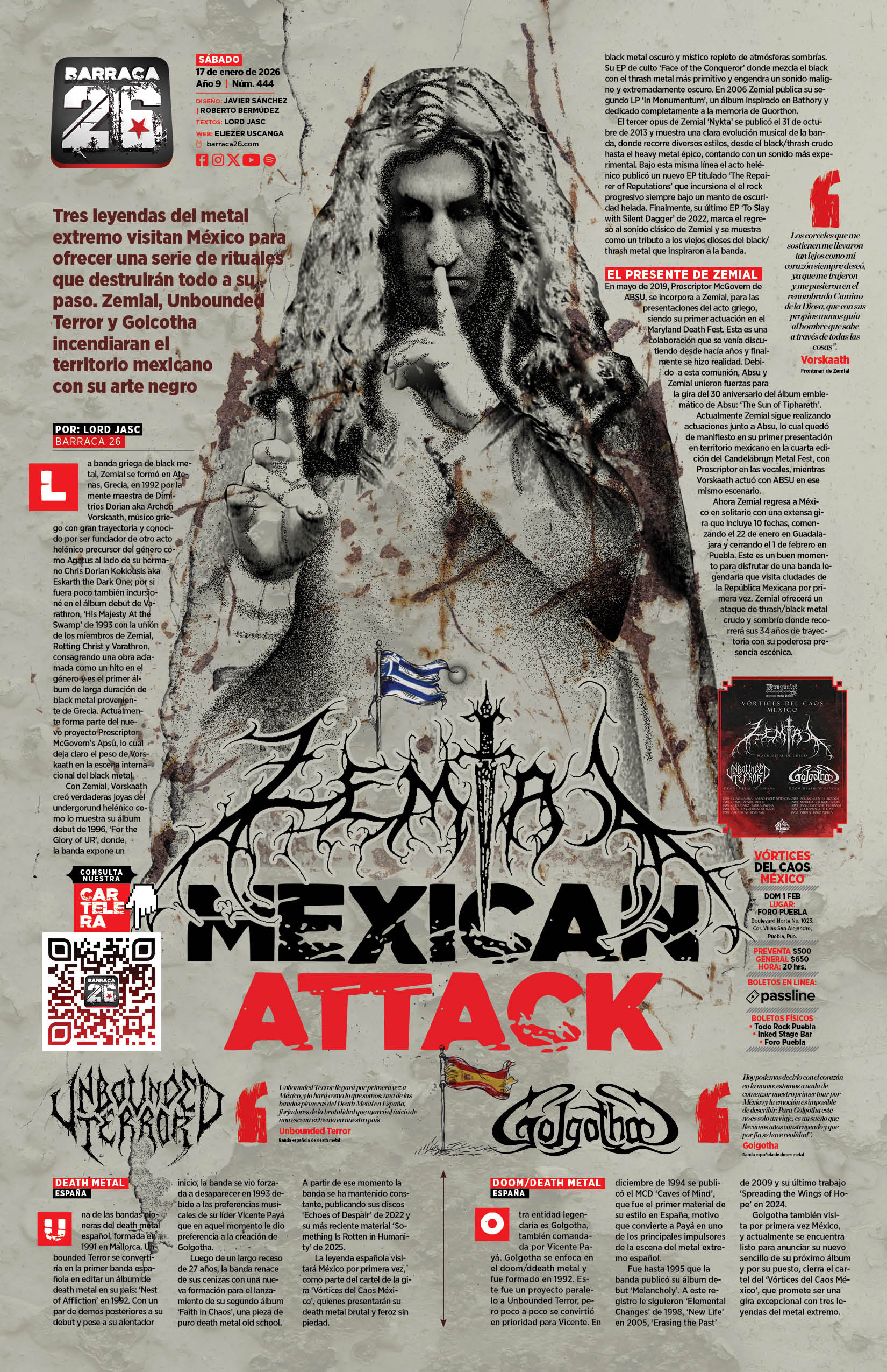 Ahora Zemial regresa a México en solitario con una extensa gira que incluye 10 fechas, comenzando el 22 de enero en Guadalajara y cerrando el 1 de febrero en Puebla. Este es un buen momento para disfrutar de una banda legendaria que visita ciudades de la República Mexicana por primera vez. Zemial ofrecerá un ataque de thrash/black metal crudo y sombrío donde recorrerá sus 34 años de trayectoria con su poderosa presencia escénica.